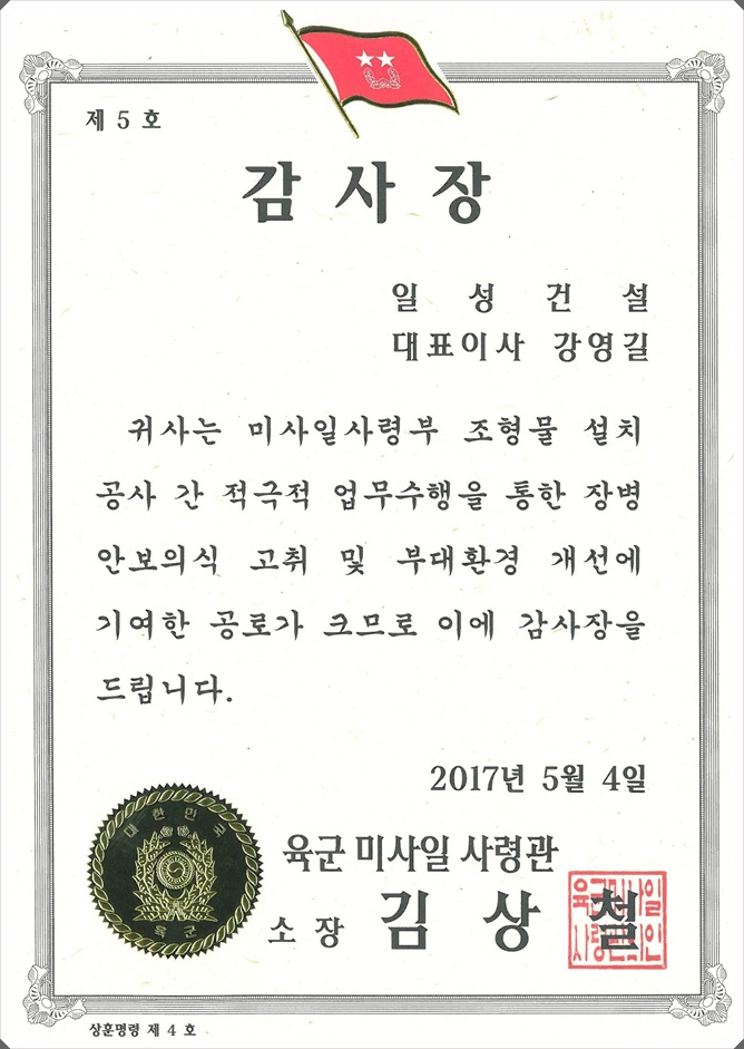"913-1-H사업의 정상 추진 기여" 감사장 수상
