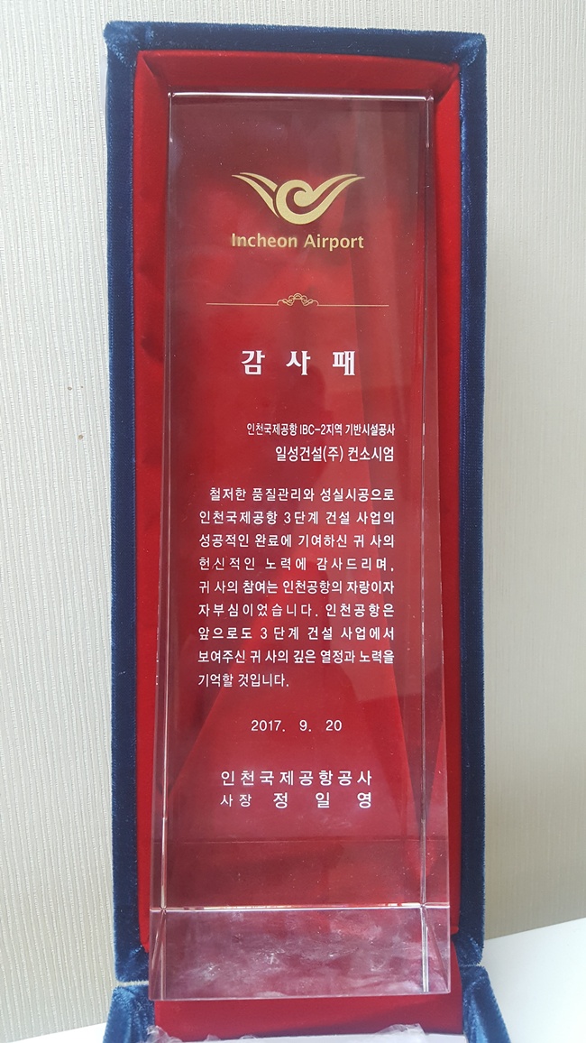 인천국제공항 IBC-2지역 '인천공항공사 감사장 수상'