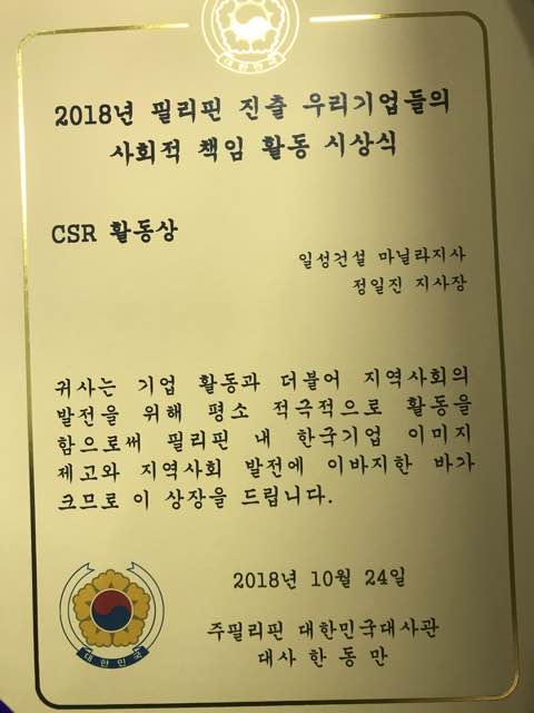 필리핀 진출 우리기업들의 사회적 책임활동 시상