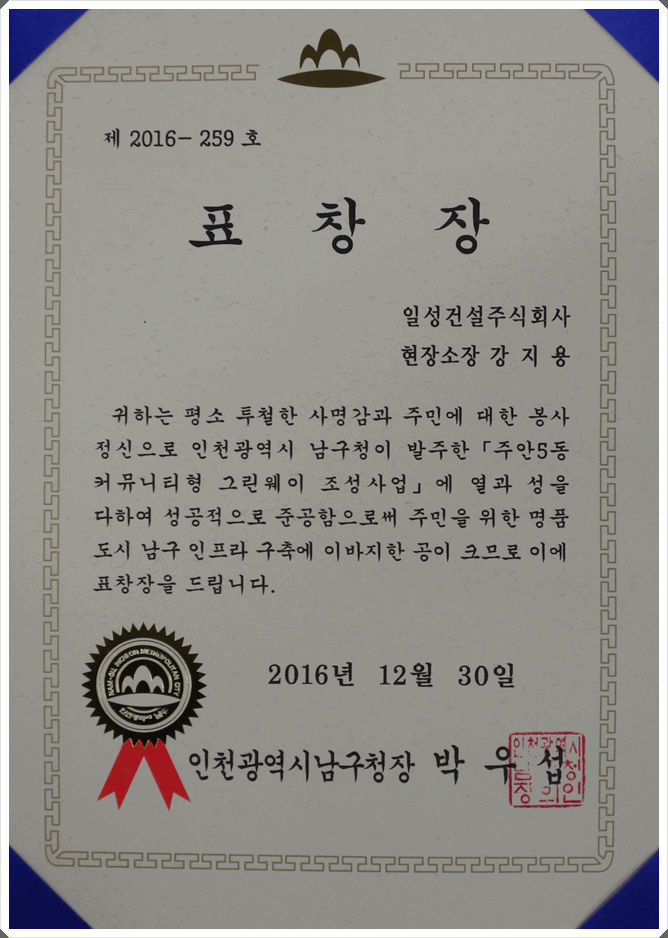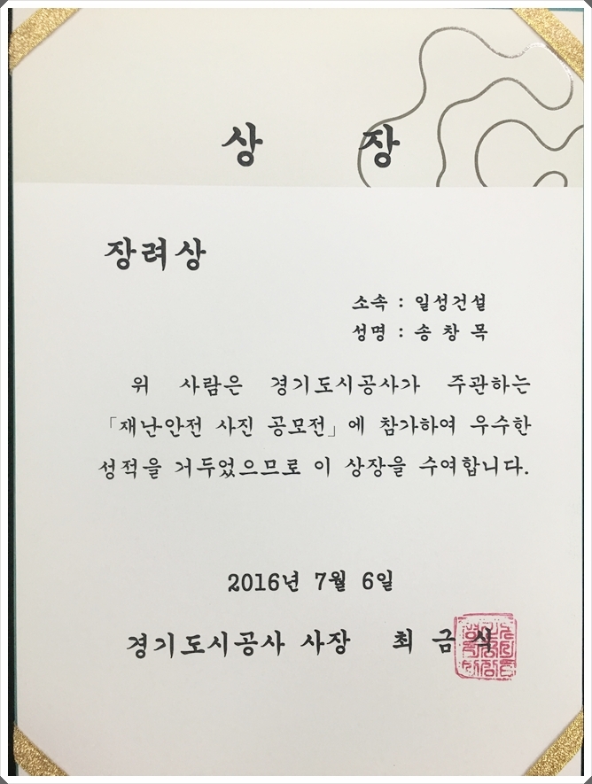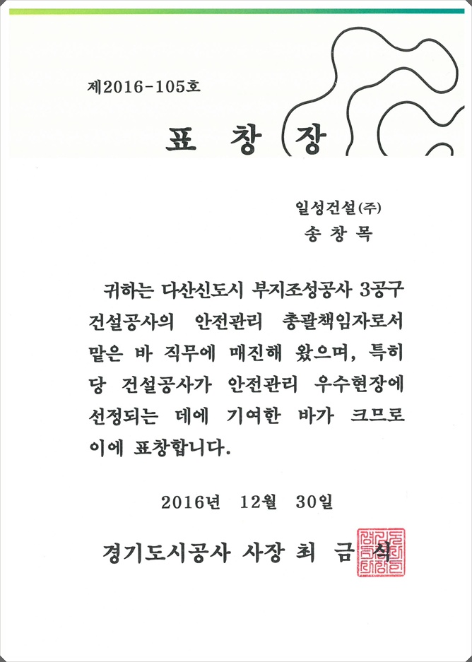 '안전관리 우수 표창장 수상'